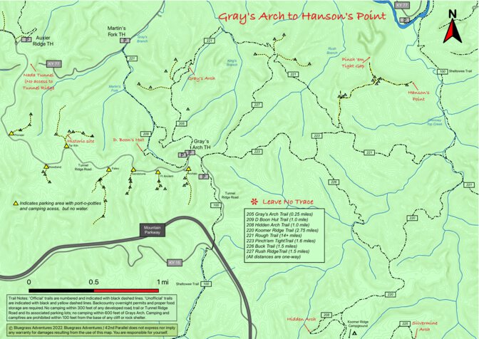 Red River Gorge: Gray’s Arch to Hanson’s Point map by 42nd